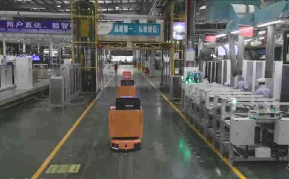 为车载冰箱物流配送打造的智能解决方案,,,包含产中物流通过潜伏举升AMR搬运至线边,,产后成品物流智能仓储,,流程包含产中物流智能齐套入库,,,,线边安灯叫料AMR智能配送至线边,,,成品入库、、出库,,通过无人堆高车机器人,,,,智能仓储管理替代人工作业管理,,,实现更高存储、、更高效率、、、更具柔性化的解决方案。。。