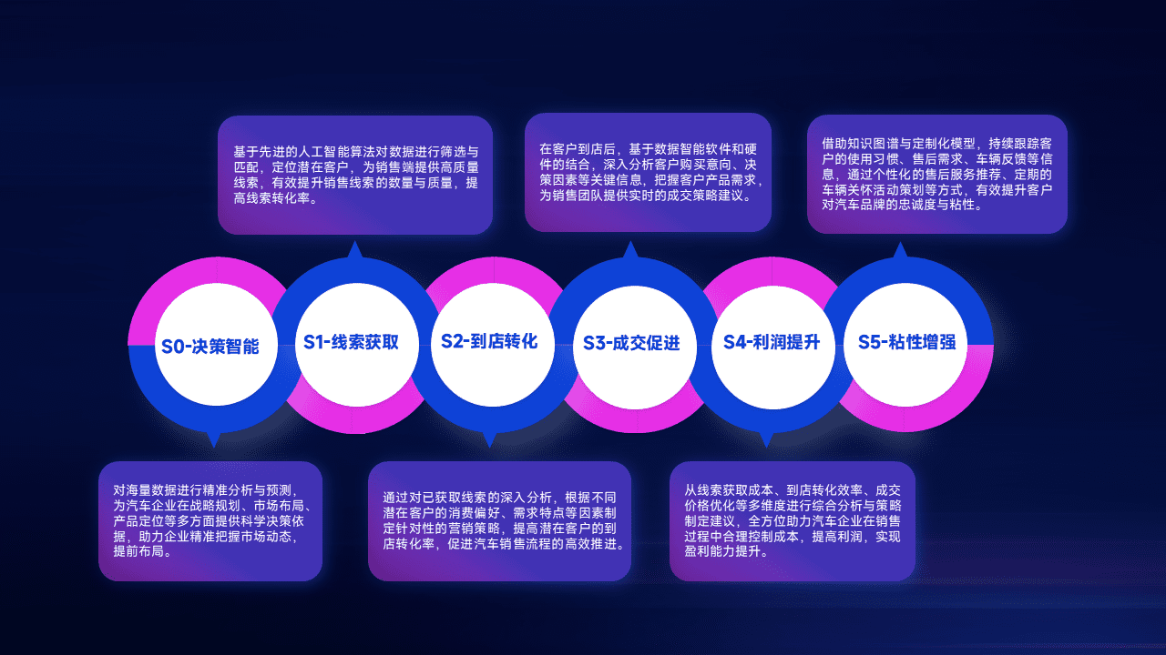 通过拓宽潜在客户来源、、、优化线索分配并提高到店转化率,,以增强销售效率。。同时,,,利用线索数据不断优化分析模型,,,有效提升转化率,,,,扩大营销影响力。。